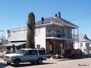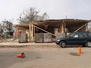 Photos taken by Ron Daley showing Clean up processes and signs of further recovery by repairing or rebuilding homes and buildings.